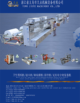 金華市久業(yè)智能科技有限公司專業(yè)制造無紡布機械,餐巾紙機械,濕巾機械設備,集機械設備的生產(chǎn)科研、銷售服務、后勤保障為一體。位于全球關注的浙江義烏工業(yè)園區(qū)內(nèi),距離義烏機場,義烏火車站僅10分鐘車程,交通便利。